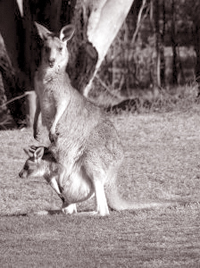 爬 到 媽 媽 的 袋 子 只 需 幾 分 鐘 , 一 定 不 會 走 錯 路 ! 一 到 袋 子 , 嘴 巴 就 黏 上 一 個 乳 頭 , 這 一 黏 上 就 不 放 了 ! 如 果 我 們 用 力 把 牠 拉 開 , 牠 會 受 傷 的 。 媽 媽 有 四 個 乳 頭 。 小 袋 鼠 在 媽 媽 的 袋 裡 約 180 天 , 這 時 , 牠 不 但 器 官 都 長 了 , 毛 也 長 出 來 了 , 牠 開 始 出 去 看 看 世 界 , 但 是 一 會 兒 又 回 去 袋 子 裡 。 漸 漸 長 大 的 小 袋 鼠 , 漸 漸 多 時 間 在 外 頭 。