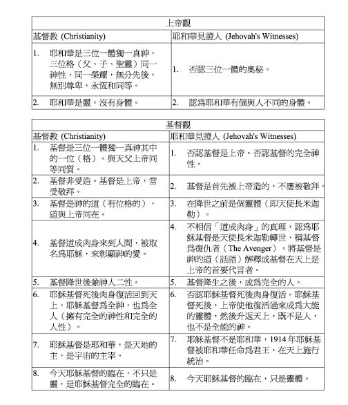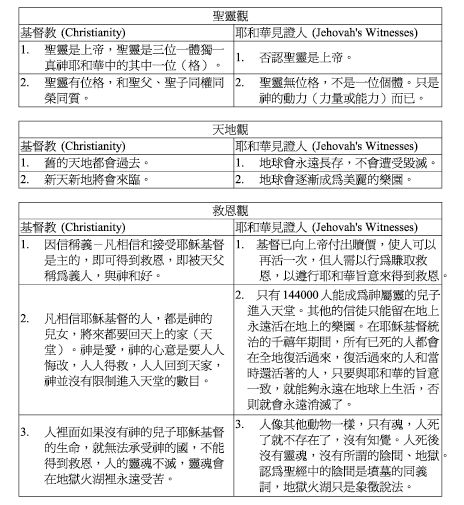 基 督 教 和 耶 和 华 见 证 人 的 教 义 比 较 表